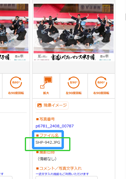 写真番号の下のファイル名[ SHO-xxxx ]を、注文フォームに記入、メール送信、お電話,